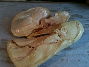 The result mainly depends on the quality of the foie gras itself. A couple of years ago, we bought some Eastern European foie gras on the market – much cheaper – but were very disappointed with the results. Now we ask for “high quality foie gras” from the south west of France at the butcher’s on Rue Montorgueil. It usually weighs 500 to 700 grams. The one I bought this time was 500 grams and cost 30 euros. The same foie gras (mi-cuit) bought from the traiteur costs 110 to 120 euros a kilo, so making your own is definitely more economical.